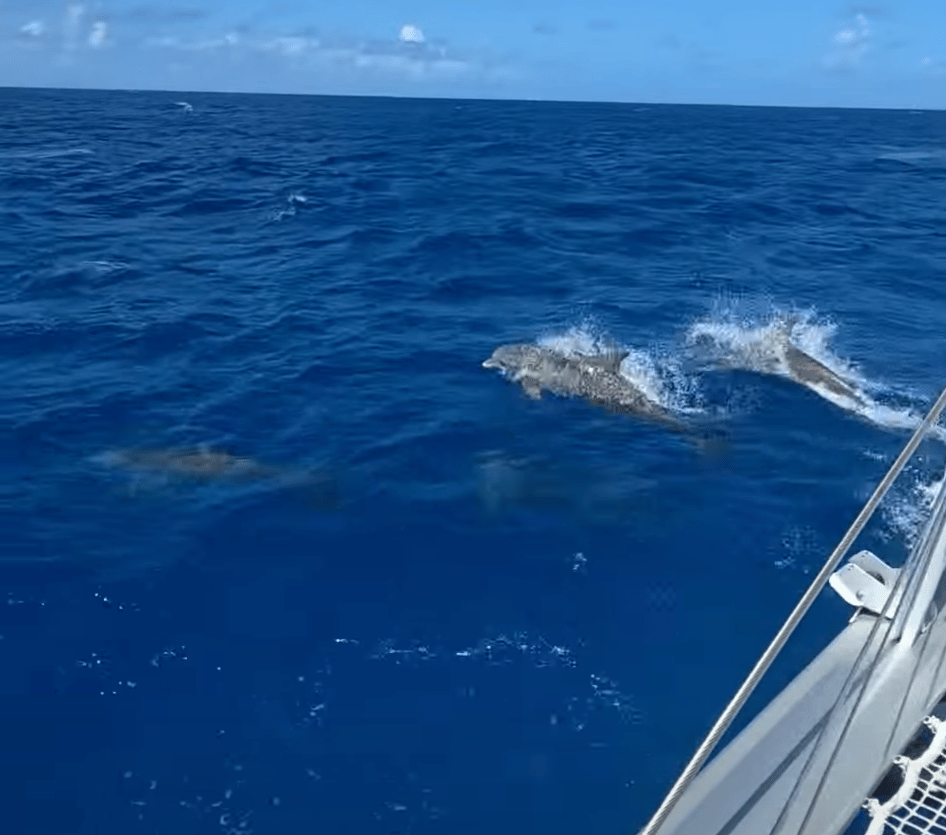 A family of six dolphins visited on our sail back from Anegada